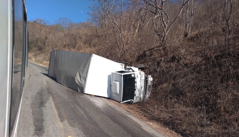 O motorista de um caminhão de entregas perdeu o controle do volante e tombou na RN-117.