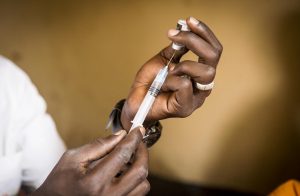 Agente de saúde prepara dose de vacinação polivalente a crianças do vilarejo de Kombaka, na cidade de Mopti, Mali, em março de 2019 (Foto: Unicef/Seyba Keita)