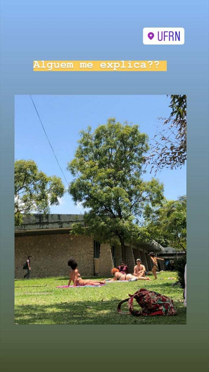 Um vídeo compartilhado desde ontem nas redes sociais, mostra supostos alunos do Campus Central da Universidade Federal do Rio Grande do Norte (UFRN) ‘pegando um bronze’ nas dependências da instituição (Setor IV), numa tarde de aulas. O grupo está vestido com trajes de banho e curte o sol, sem a presença de nenhum professor ou responsável.