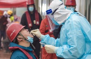 Profissional da saúde coleta amostra para teste à Covid-19 na cidade de Tianjin, ao norte da China, em novembro de 2020 (Foto: Xinhua)