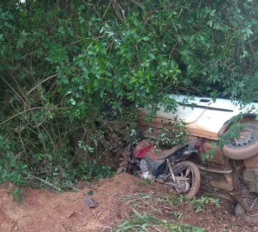 Os três bandidos estavam em uma motocicleta e tentaram abordar um casal em outra moto na região. O casal não parou e os homens fizeram disparos com arma de fogo. Em seguida, se depararam com um carro modelo Corsa branco e também atiraram contra ele. Foi aí que, segundo a PM, o condutor reagiu colidindo o veículo com a motocicleta dos bandidos.