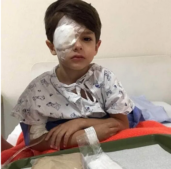 Bastante preocupada, a mãe relata que o acidente foi grave e o menino precisou passar por um procedimento médico invasivo por conta de uma queimadura no olho.