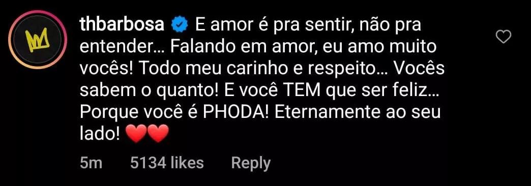 Na publicação no Instagram, Fernanda escreveu: “Se conhecer e acolher cada descoberta sobre si é um processo enriquecedor e transformador. É ser quem se é. É viver o que se quer. Somos muito gratas por termos nos encontrado nesse caminho lindo que se revelou pra nós…Amor é amor. 🌈 ❤️.” O texto é assinado por Fernanda e Eduarda.
