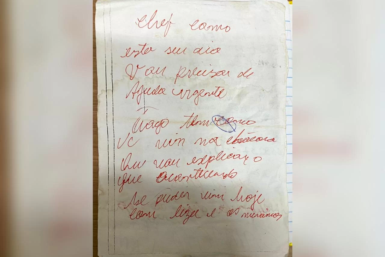 Entre os objetos encontrados dentro do cativeiro em que membros de uma mesma família foram mantidos sob cárcere, em Planaltina, no Distrito Federal, a Polícia Civil do Distrito Federal (PCDF) identificou um bilhete que pode ter sido utilizado por criminosos para atrair Thiago Belchior, 30 anos, a esposa dele, Elizamar da Silva, 39, e os filhos do casal, até a chácara dos pais do rapaz, localizada no Itapoã.