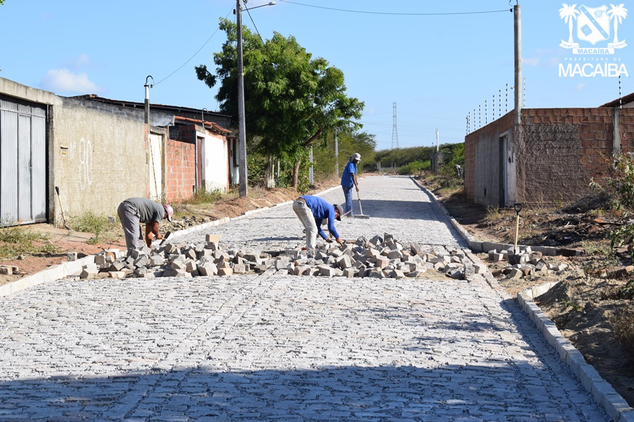 A Prefeitura de Macaíba, mediante a Secretaria Municipal de Infraestrutura, segue pavimentando diversas ruas do distrito de Mangabeira, um dos mais importantes do município. Além das obras já em fase avançada no Loteamento Santa Rosa, agora se deu início a obras de pavimentação e drenagem nas proximidades do novo posto de saúde, onde a rua principal (Agenor Xavier) e várias travessas adjacentes estão sendo calçadas.