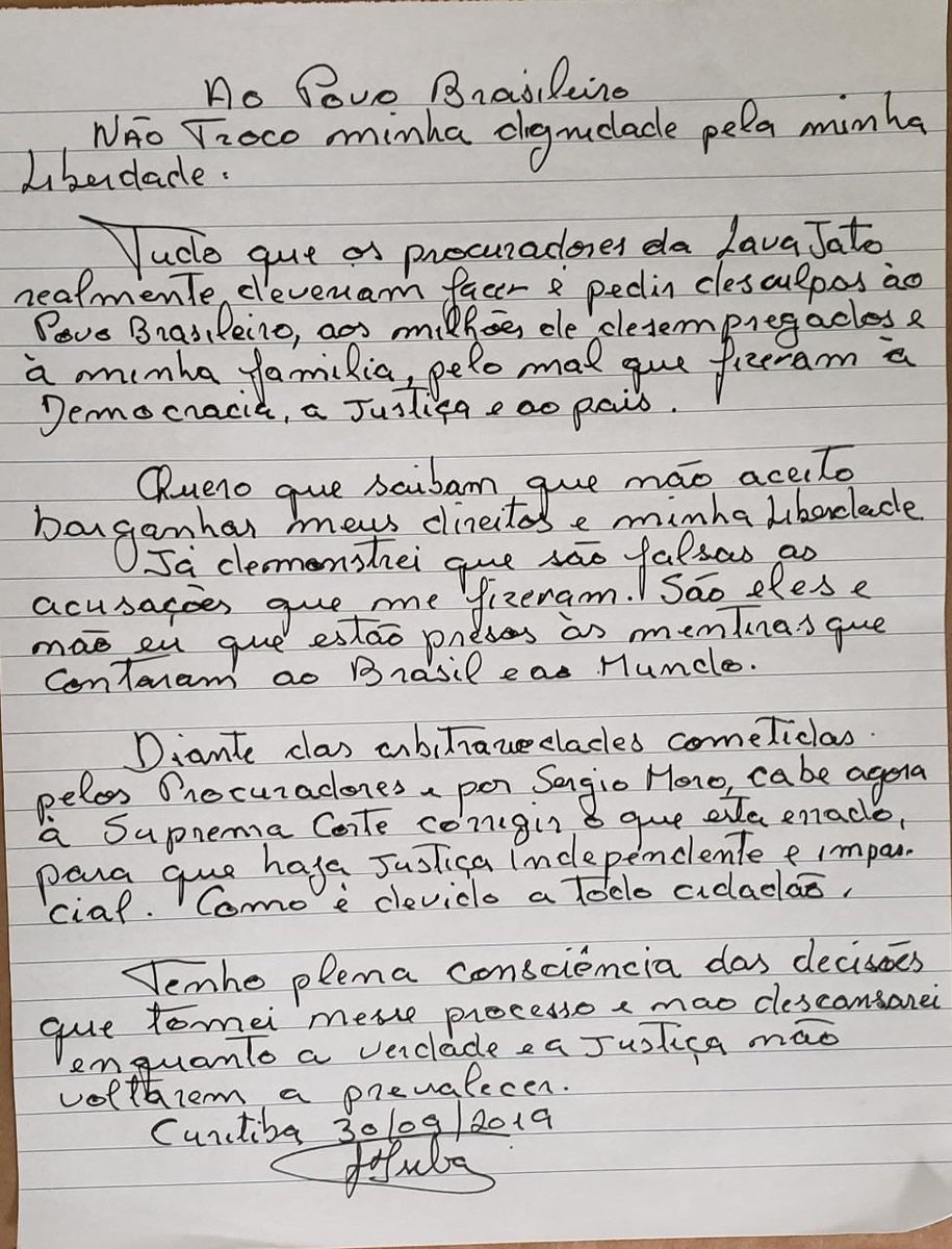 01 outubro 2019 05:16 Carta de Lula Postado por Administrador About The Author Administrador See author's posts Compartilhe no Facebook Compartilhe no Twitter Compartilhe no Google+