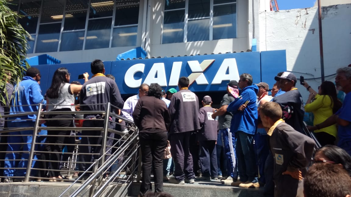 Construtores e funcionários realizaram na manhã desta quinta-feira (5), um protesto em frente a agência da Caixa Econômica Federal na avenida Coronel Gurgel, em Mossoró, para cobrar a liberação do pagamento dos valores referentes aos financiamentos feitos pelo programa do governo federal Minha Casa Minha Vida.