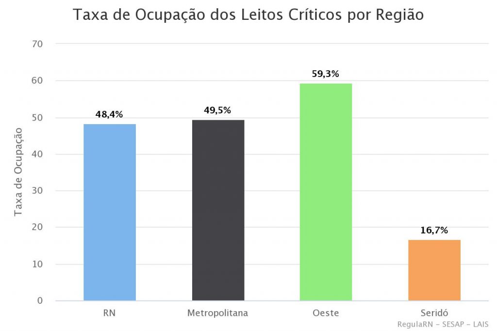 Segundo a Sesap, o Seridó registra 16,7% dos leitos ocupados, a Região Metropolitana registra 49,5% de ocupação; e a região Oeste tem 59,3% – em destaque como o índice mais alto.