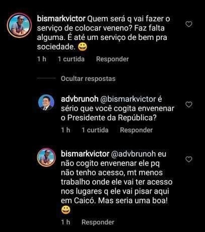 “Quem será que vai fazer o serviço de colocar veneno? Falta alguma. É até um serviço de bem pra sociedade”, comentou o jovem, identificado como Bismark Victor.