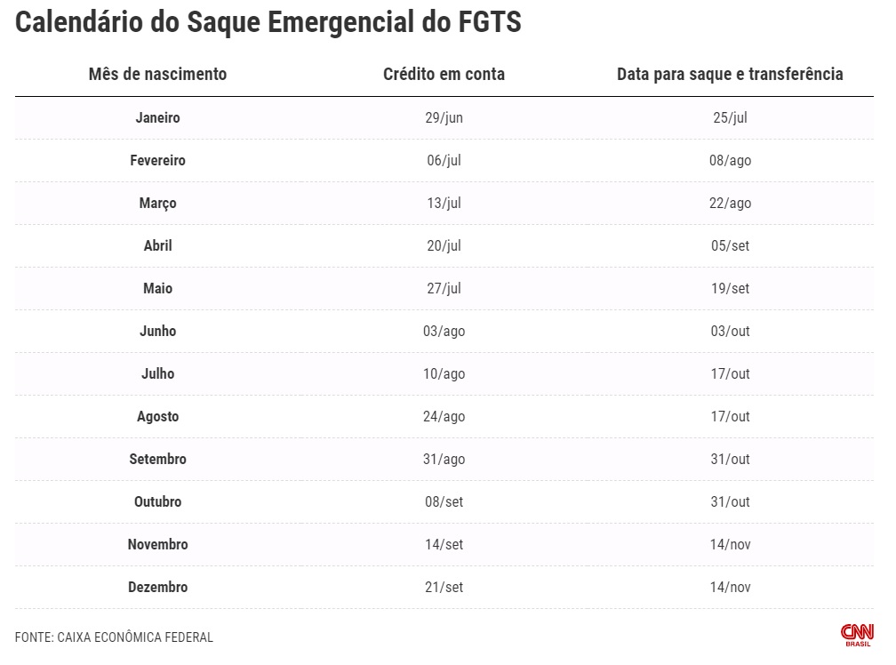 Os pagamentos serão feitos até setembro, em um calendário escalonado que segue o mês de aniversário dos beneficiários, com um intervalo de uma semana para os meses seguintes de nascimento. Ou seja, quem nasceu em fevereiro terá o recurso liberado na próxima segunda-feira, dia 6 de julho, e assim por diante.