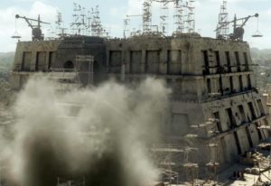 Capítulo de Gênesis transmitido nesta terça (2) mostrou queda de parte da Torre de Babel – Foto: Blad Meneghel/Record TV