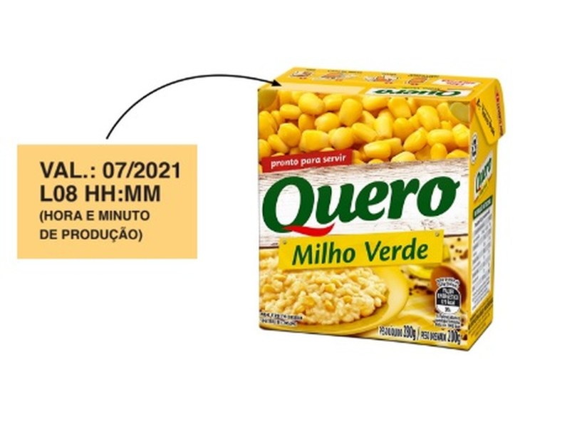 “Heinz Brasil informa o recolhimento voluntário de 244 caixas dos produtos Milho Verde Tetra Recart 200g, da marca Quero, fabricados em 8/01/2020 entre 06:30 e 23:00 e válidos até 31/07/2021, integrantes do lote L08 Val 07/2021, por potencial risco de presença de bactérias que podem causar náuseas, vômitos e/ou infecção intestinal, sobretudo em pessoas com baixa imunidade.