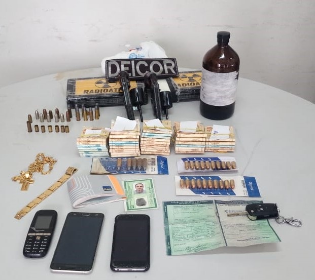 Na manhã desta segunda-feira, as equipes conseguiram prender o suspeito quando ele estava em um veículo. Com ele, os policiais apreenderam dois revólveres calibre .38 sem registro, munições de calibre .38 e 380, além de cinco quilos de drogas e R$ 43 mil reais em espécie.