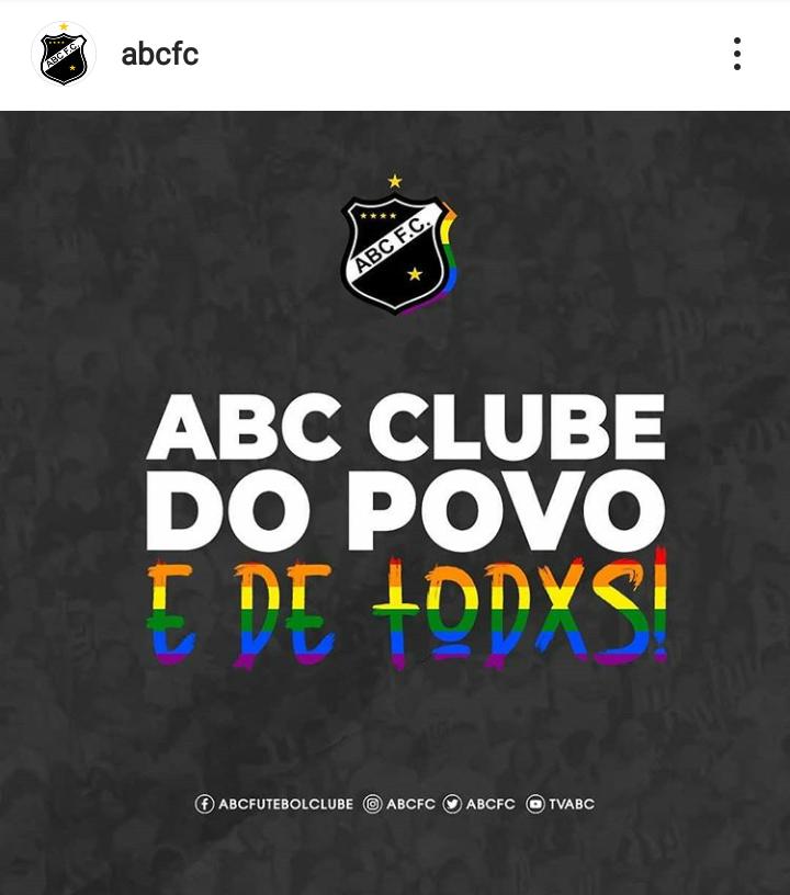 O clube ABC também soltou uma nota dizendo que o time é de todos independente de opção sexual. O que fez muito bem.