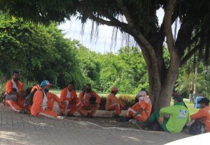 “Desde cedo encontra-se em greve dezenas de garis na Praça Paulo Holanda Paz, em frente a prefeitura. Os garis estão paralisados em suas funções por falta de recebimento do salário já a dois meses. Conversamos com alguns deles que não quiseram se identificar com medo da represália por parte do prefeito por dizerem que ele é um perseguidor e apesar disto eles paralizaram suas funções, pois estão trabalhando normalmente e tem famílias para alimentarem”.