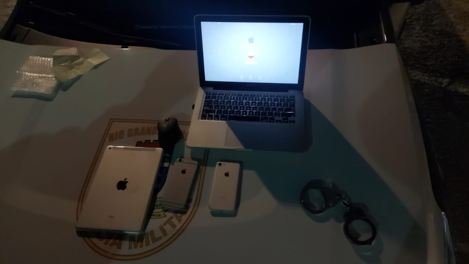 Foram recuperados do estabelecimento comercial, dois celulares do tipo IPhone, um Ipad e um Macbook da marca Apple.