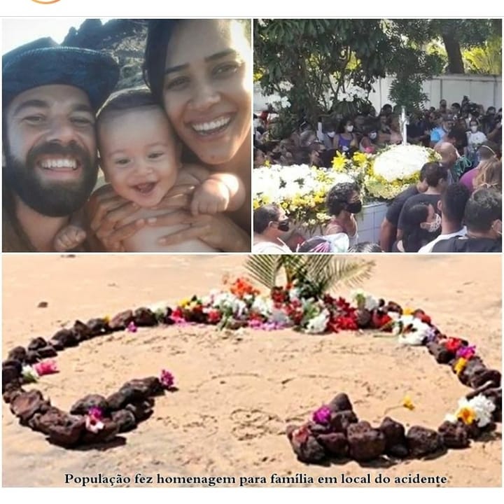 Stella Souza, de 33 anos, Hugo Pereira, de 32, e o filho deles, Sol, de 7 meses, aproveitavam um dia de folga nesta terça (17) na praia de Pipa quando parte de uma falésia desabou sobre eles. Os três morreram na hora. O cachorro da família, que estava com eles, também morreu.