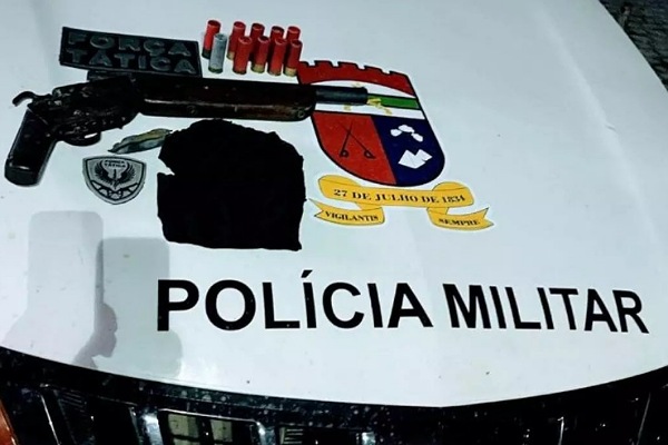 Com o homem baleado, foi apreendido o seguinte material: espingarda de fabricação caseira calibre 12, nove munições calibre 12, balaclava e pé de cabra.