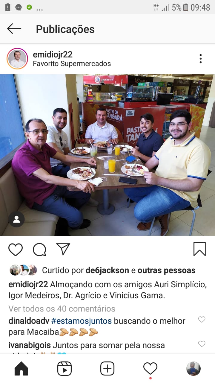 O Vice-prefeito Auri Simplício anuncia seu apoio a pré-candidatura de Emídio Junior, o anúncio aconteceu durante um almoço na praça de alimentação do Favorito. Auri é um dos políticos mais respeitados e pode também ser uma possível indicação do DEM como companheiro de chapa de (Bob Filho) Emídio Junior.