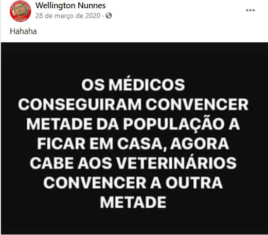 E na última foto, vemos essa mesma criatura cercada por uma multidão em plena pandemia. Eu sei que assim como eu, você deve estar se acabado de tanto ri, mas são momentos como esse que só podiam ser proporcionados pela internet. Agora será que quando ele falou em veterinário ele se referiu a ele mesmo? Pois ele faz parte da metade que não foi convencida pelos médicos a ficar em casa.