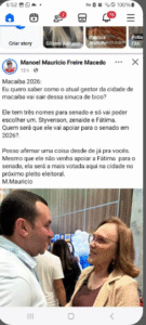 O Profeta Manoel Maurício viajou na maionese ao afirmar que a governadora Fátima Bezerra seria a mais votada em Macaíba para o Senado em 2026, mesmo sem o apoio do prefeito . Vamos registrar aqui essa viagem do Profeta.