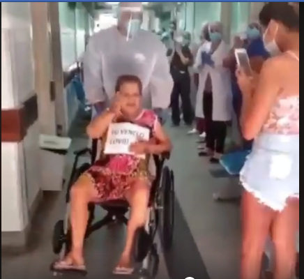 Aplaudida por vários profissionais, entre eles, médicos e enfermeiros que a acompanhavam, ela deixou o quarto orgulhosa levantando a plaquinha “Eu venci o Covid”. Pelas redes sociais, seus familiares reproduziram o vídeo agradecendo a vitória da aposentada.👏