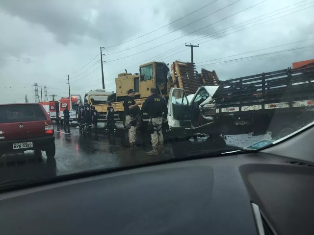 A PRF informou que o primeiro acidente aconteceu por volta das 9h40. O motorista de um caminhão perdeu o controle da direção e acabou saindo da pista. Chovia no momento do acidente. Parte da carroceria do caminhão ficou em cima da via prejudicando o tráfego de veículos. O motorista não teve ferimentos.