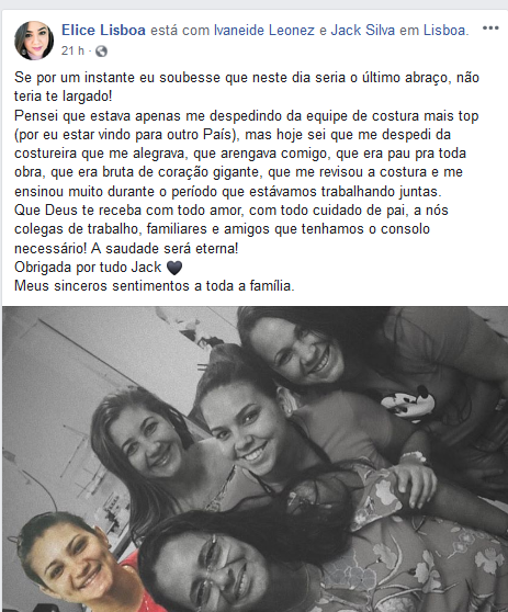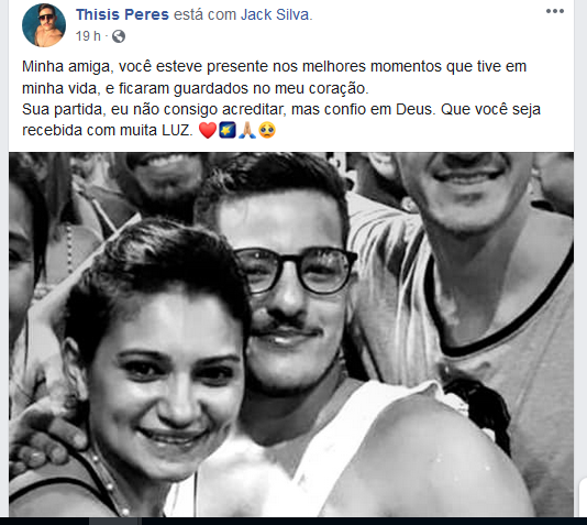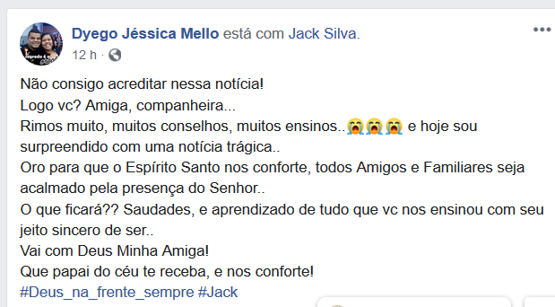 Amigos inconformados com a partida repentina de Jackeline, conhecida carinhosamente como Jack, se manifestaram relembrando momentos, que passaram ao lado jovem que era uma pessoa alegre e cheia de vida.