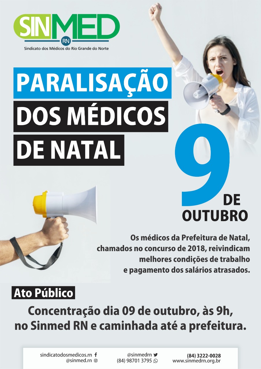 Além da paralisação, os médicos realizam também na quarta-feira uma manifestação, com concentração no Sinmed RN, às 9h da manhã. O protesto seguirá até a sede da Prefeitura, onde ocorrerá um ato público no local.