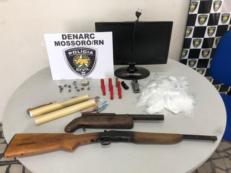 Policiais civis da Delegacia Especializada de Narcóticos (DENARC) de Mossoró apreenderam em flagrante, nesta sexta-feira (15), um adolescente de 17 anos, por ato infracional análogo aos crimes de tráfico de drogas e porte de arma de fogo. A apreensão aconteceu no bairro Santo Antônio, localizado no município de Mossoró.