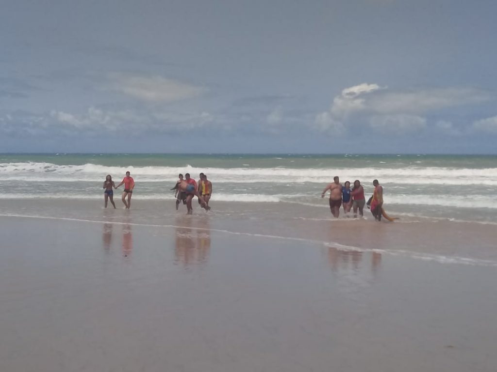 Guarda-vidas do Corpo de Bombeiros salvaram 9 pessoas da mesma família foram vítimas de afogamento na praia de Búzios no início da tarde deste sábado (22).