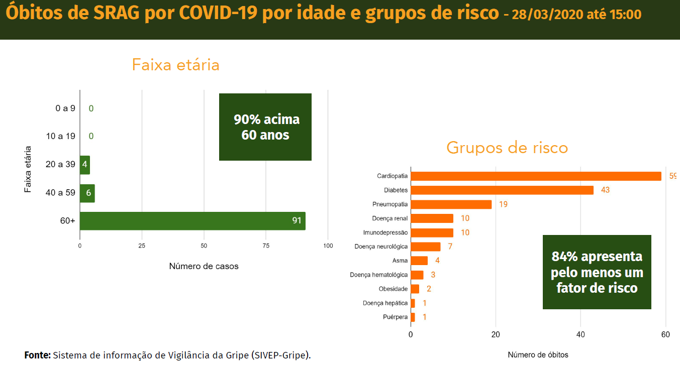 Abaixo, os dados sobre a faixa etária e as comorbidades associadas a 101 mortes: