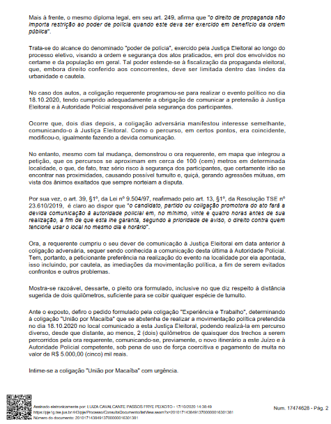 Espero que agora esteja claro para os eleitores dos meninos que a caminhada deles amanhã foi suspensa pela Justiça.