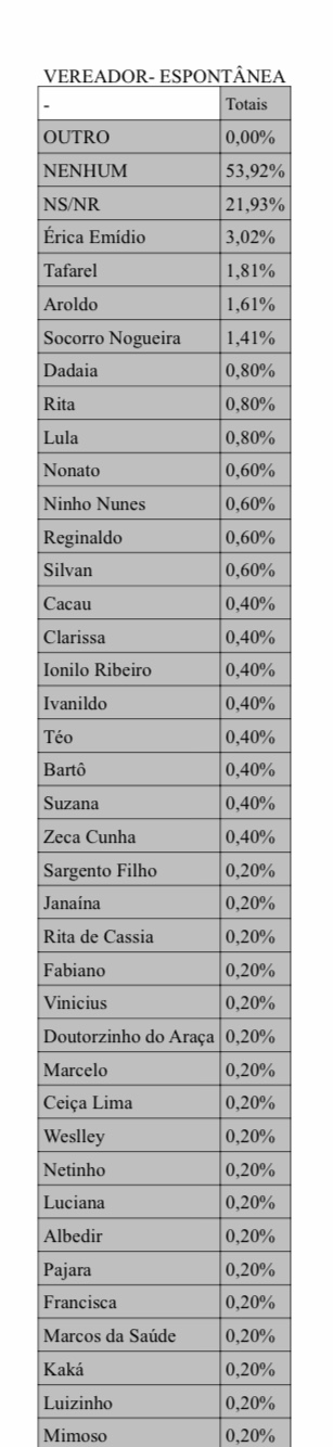 PESQUISA BG/SETA/MACAÍBA/ VEREADOR: Confira a lista com os nomes mais citados para a Câmara - Informativo Atitude