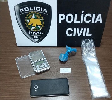 Com ele, foram encontrados uma porção de “crack”, uma balança de precisão, uma lâmina de corte e diversos sacos plásticos usados para embalar drogas. Álvaro Rocha também é suspeito de praticar homicídio e outros crimes na cidade de Macaíba, além de atuar em uma facção criminosa na região.