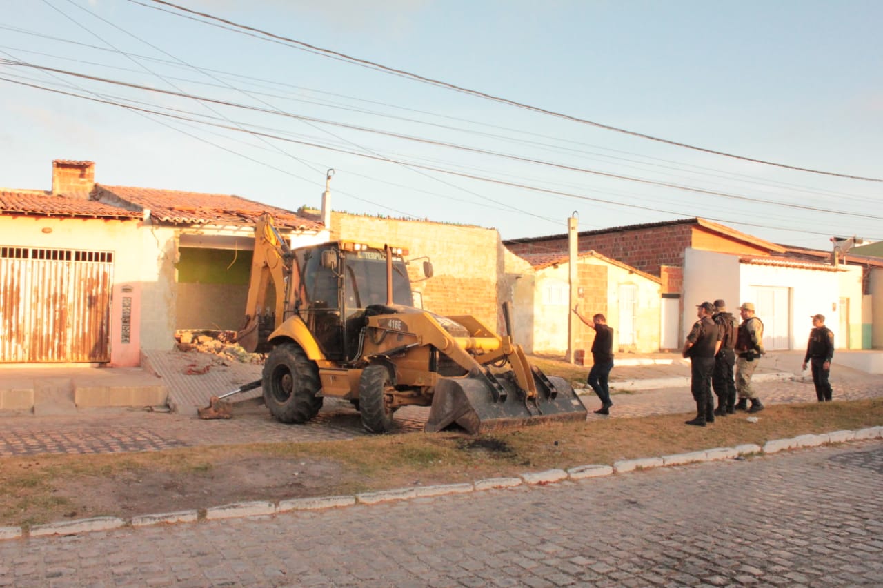 Com o mandado em mãos a Polícias Civil solicitou a apoio da Policia Militar e só conseguiu entrar na casa, utilizando uma maquina retro escaveira. Segundo o Delegado Luiz Fernando, a casa era usando com ponto de venda de drogas e deposito de objetos roubados, há mais de 20 anos na cidade. O proprietário reforçou a segurança do imóvel utilizado chapa de aço e canos de ferro, o que impedia o cumprimento do mandado judicial.