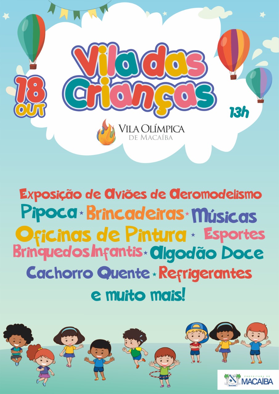 Brincadeiras, show com palhaços, distribuição de pipocas, cachorro-quente, picolé, balas, pirulitos, exposições e jogos! Tudo isso e muito mais! É o que a Prefeitura de Macaíba, através de um trabalho conjunto de várias secretarias, irá promover na próxima sexta-feira (18/10) em sua Vila Olímpica.