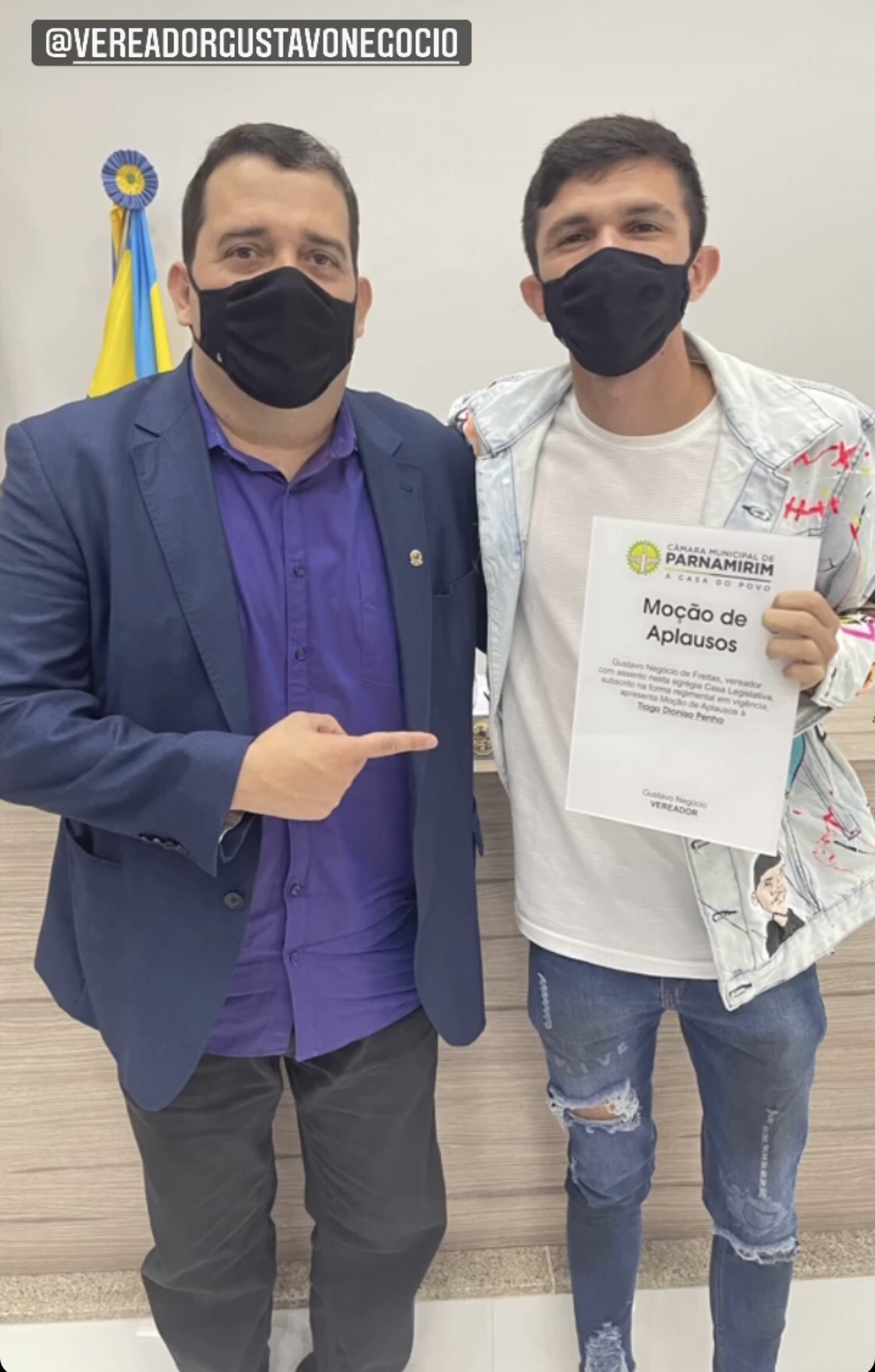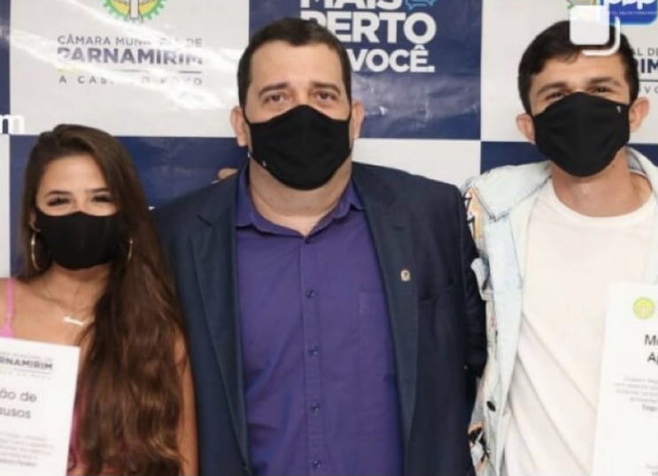 E eles foram homenageados na Câmara Municipal, a partir de proposição do vereador Gustavo Negócio que ofereceu uma Moção de Aplausos a Tiago Dionísio e Lawany Mirelly.