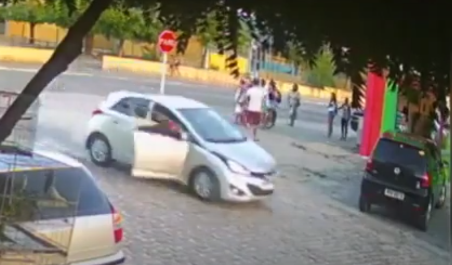 Uma das cenas impressionantes foi registrada no momento em que um dos bandidos consegue escapar dos PMs com o veículo em movimento e se esconder atrás de outro veículo enquanto a viatura continua a perseguição.