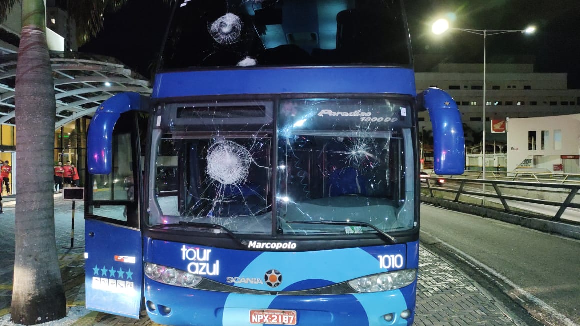 Vândalos invadiram o hotel onde o Campinense estava hospedado, nas proximidades do estádio e depredaram o local. Imagens mostram o momento da confusão generalizada, com agressões e destruição do ônibus do Campinense.